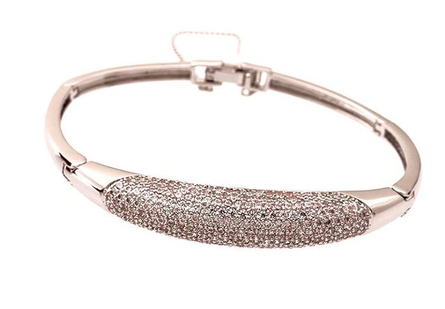 Gold with rhinestones water drop design bangle made of high-quality cubic zirconia material with rhinestones. A popular and decent accessory for any occasions. Perfect gift for your friends and your loved ones.